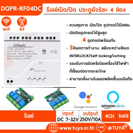 DOPR-RF04AC รีเลย์เปิด/ปิด ประตูอัจริยะ 4 ช่อง WIFI + RF 4CH Tuya สมาร์ท Wifi ไฟเข้าAC85V-250V 433 Remote Control Appliance Control โมดูล4CH รีเลย์ทำงานร่วมกับ Alexa Google Home