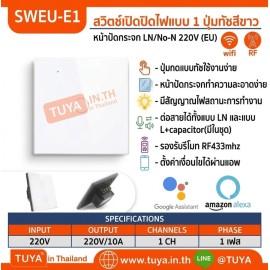 SWEU-E1 สวิตช์เปิด/ปิดไฟแบบทัชสีขาว LN/LL แบบ1ปุ่มทัช (EU) จตุรัส WIFI สั่งเปิด/ปิดผ่านแอพพลิเคชั่นมือถือ 220V 10A