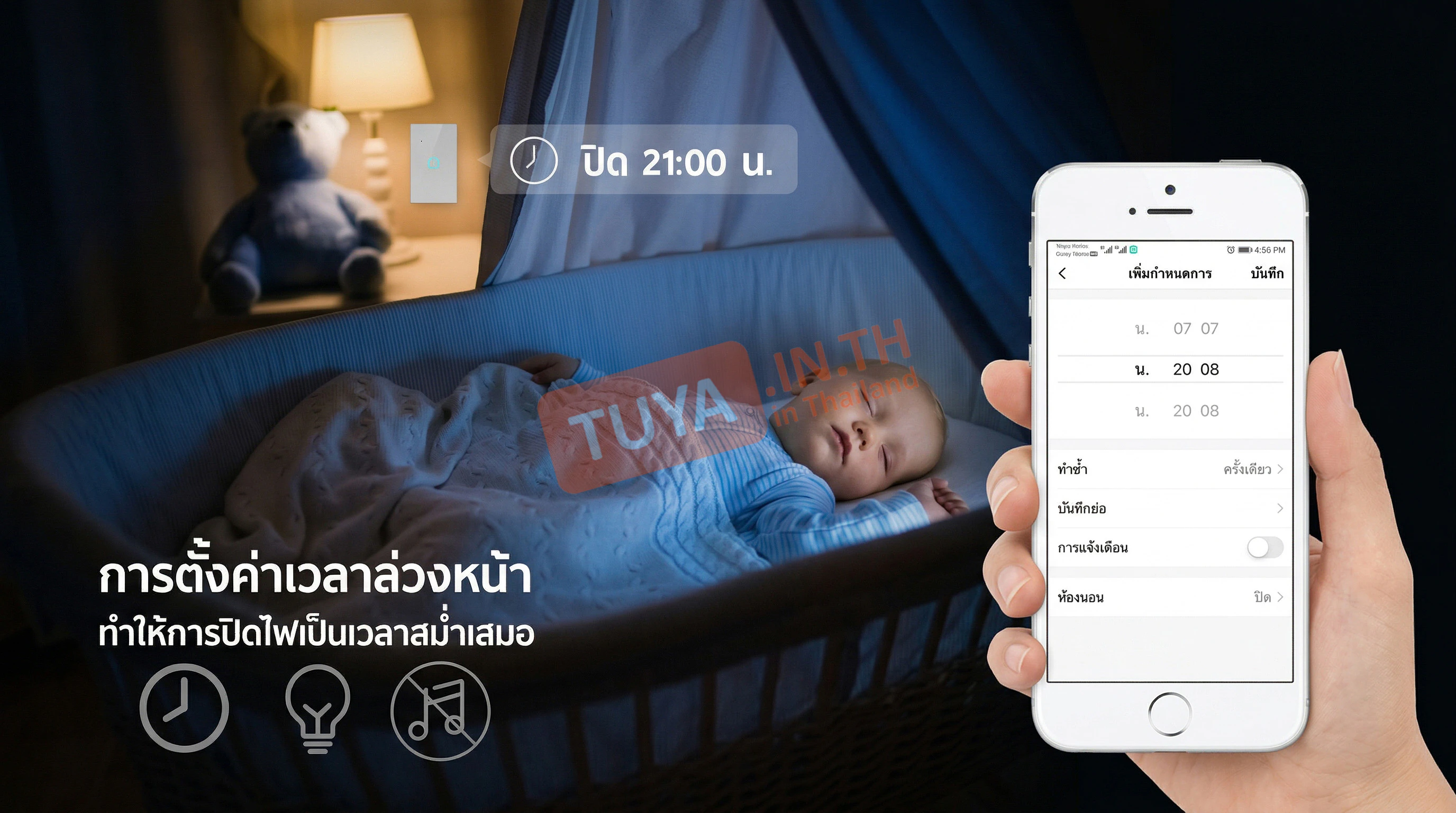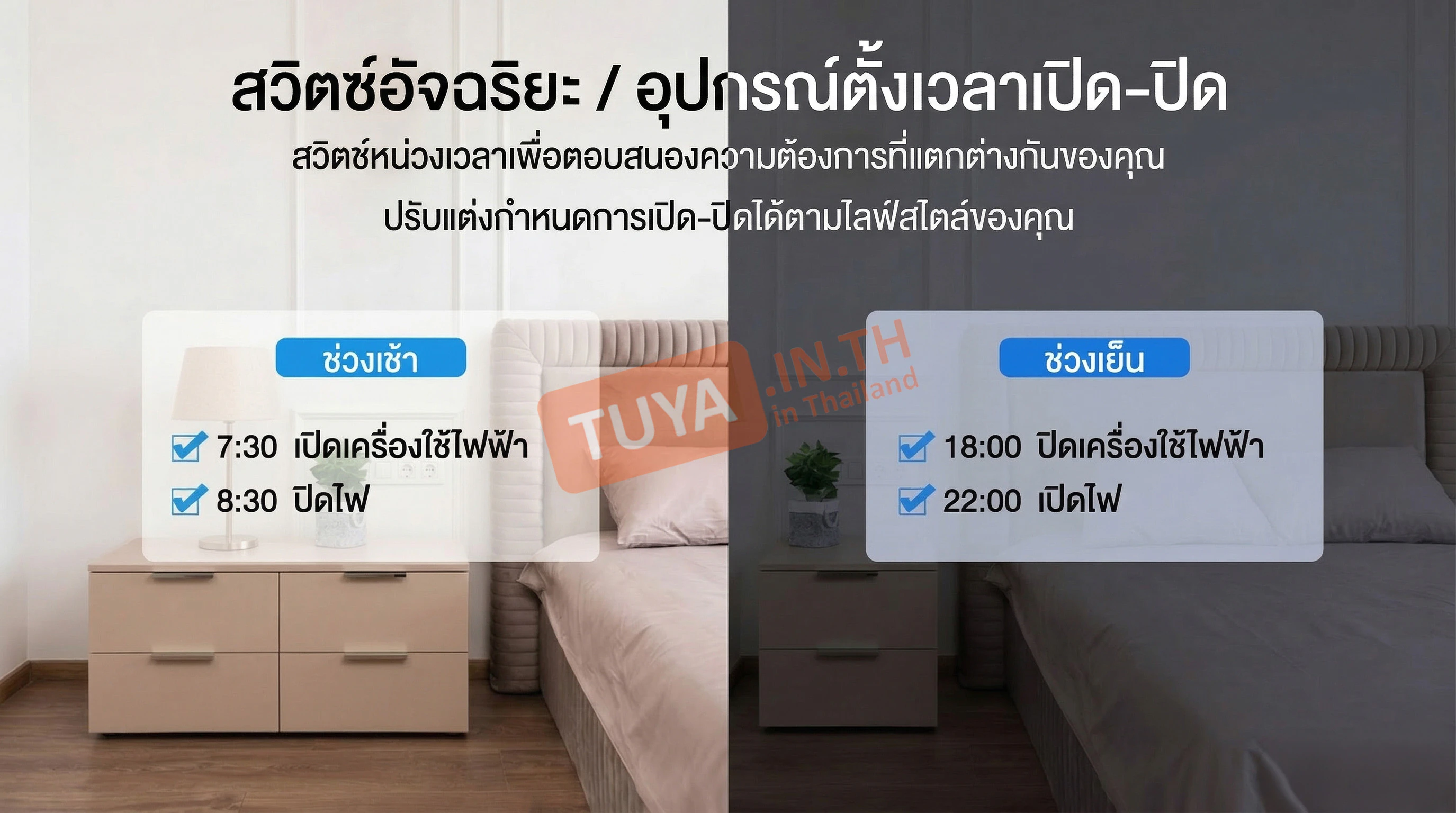 - ✓ ตั้งเวลาอัจฉริยะ: ตั้งตารางเวลาเปิด-ปิดอัตโนมัติ (Schedule) หรือตั้งเวลานับถอยหลัง (Timer) ได้