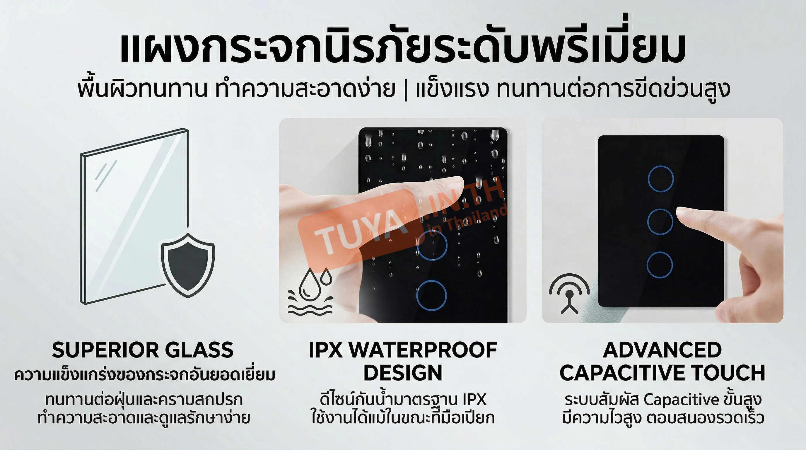 - ✓ แผงสัมผัสกระจกนิรภัย: หน้าปัด Tempered Glass สวยหรู ทนรอยขีดข่วน ทำความสะอาดง่าย และกดใช้งานได้แม้ไม่มีอินเทอร์เน็ต