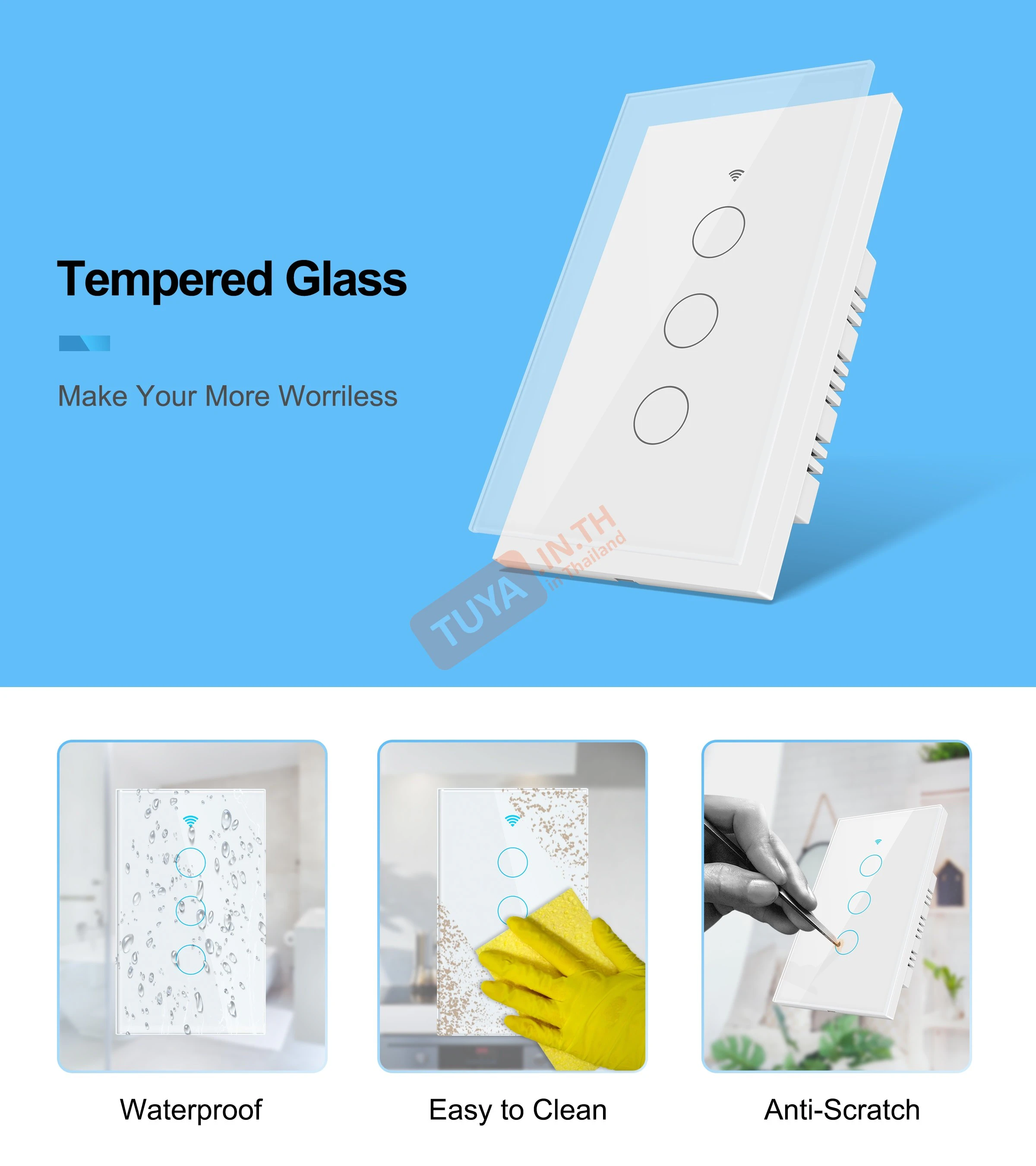 - ✓ สั่งงานผ่านมือถือ: ควบคุมเปิด-ปิดได้จากทุกที่ทั่วโลกผ่านแอป Tuya Smart หรือ Smart Life