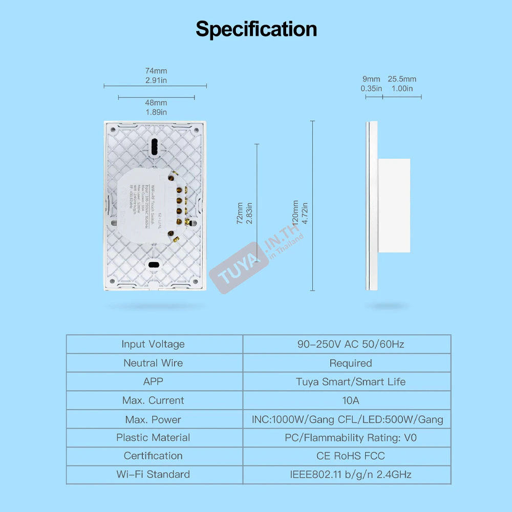 - • ขนาด: มาตรฐาน US / AU สามารถใส่แทนบล็อกสวิตช์ไฟเดิมขนาดมาตรฐานในไทยได้ทันที