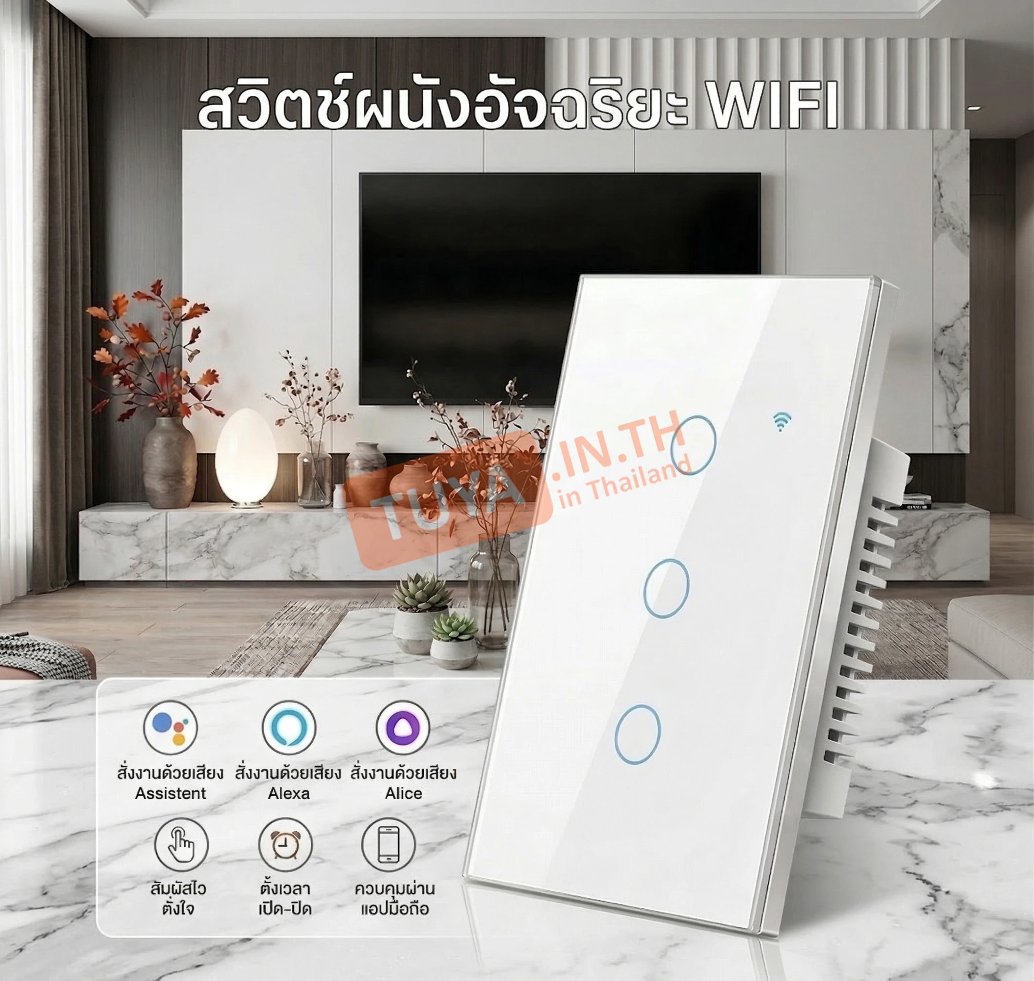 - ✓ รองรับการสั่งงานด้วยเสียง: ใช้งานร่วมกับ Google Home, Alexa และ Siri (Voice Control)