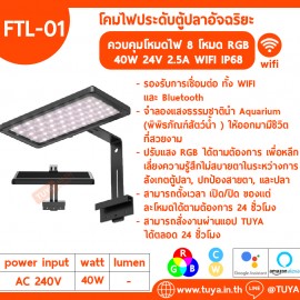 FTL-01 โคมไฟประดับตู้ปลาอัจฉริยะ ควบคุมโหมดไฟ 8 โหมด RGB 40W 24V 2.5A WIFI IP68