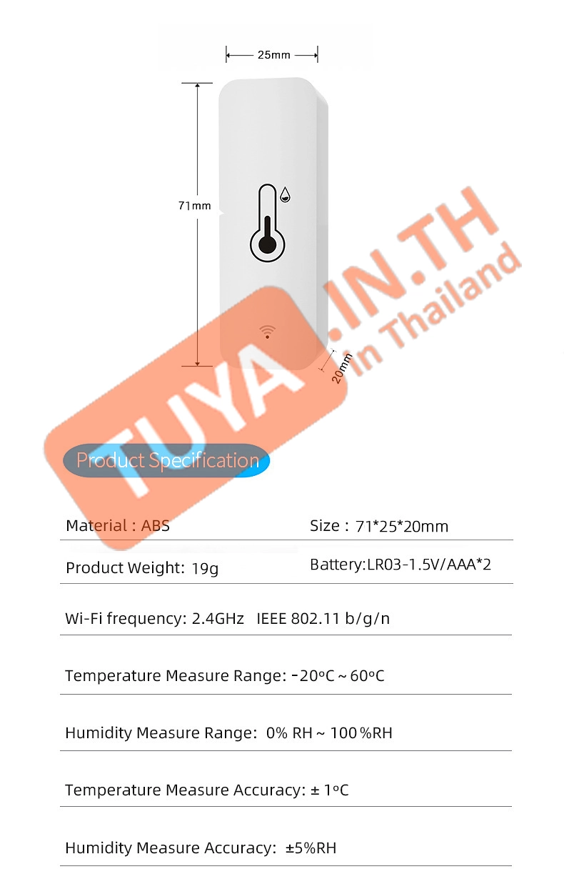 THS08 เซ็นเซอร์วัดอุณหภูมิและวัดความชื้น แบบมีหน้าจอแสดงผล (WiFi) AA*3 55db